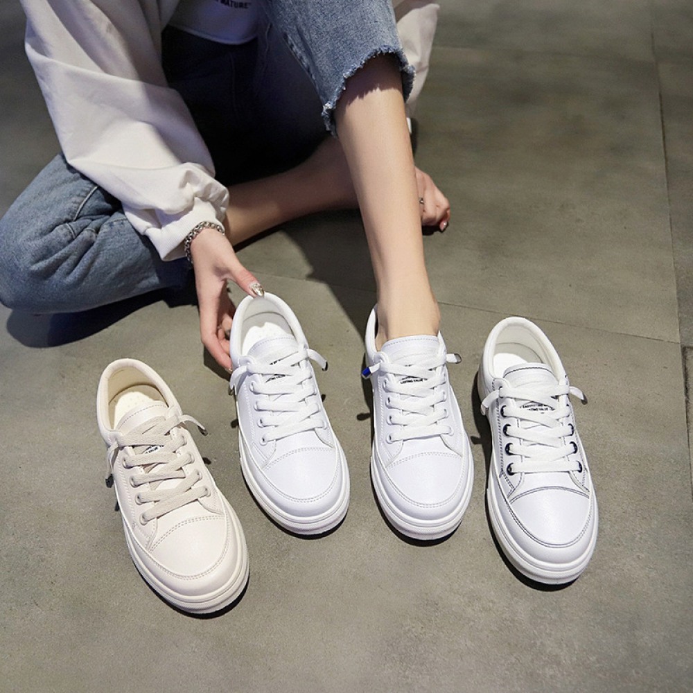 Spring And Summer New White Shoes Women Breathable Leather Thick-Soled Casual Shoes Sports Running Shoes Women