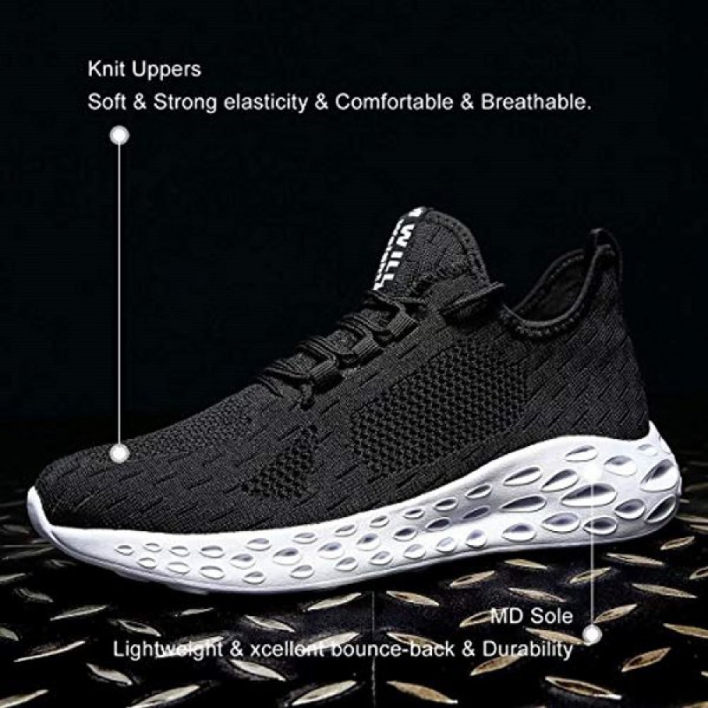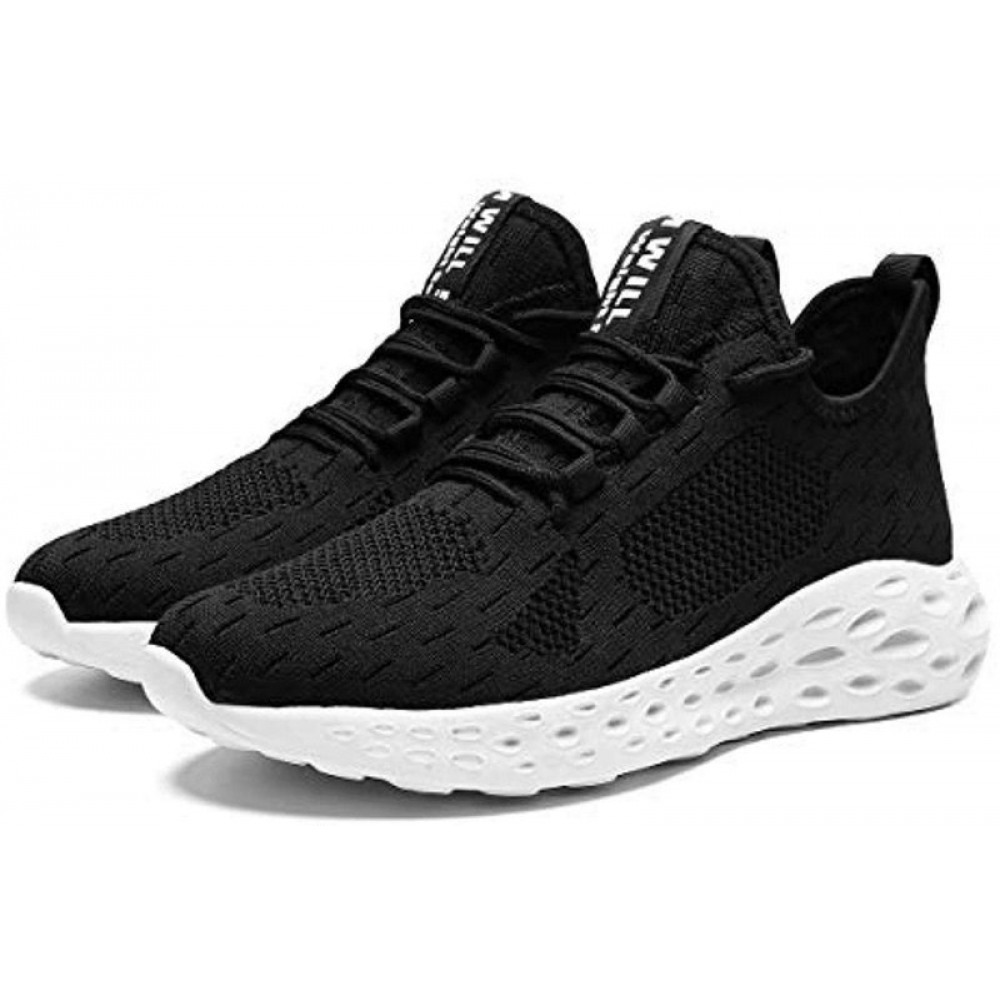 Mens Running Shoes Slip On Walking Shoes Fashion Breathable Sneakers Mesh Soft Sole Casual Athletic Lightweight Black-White