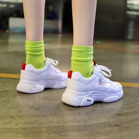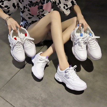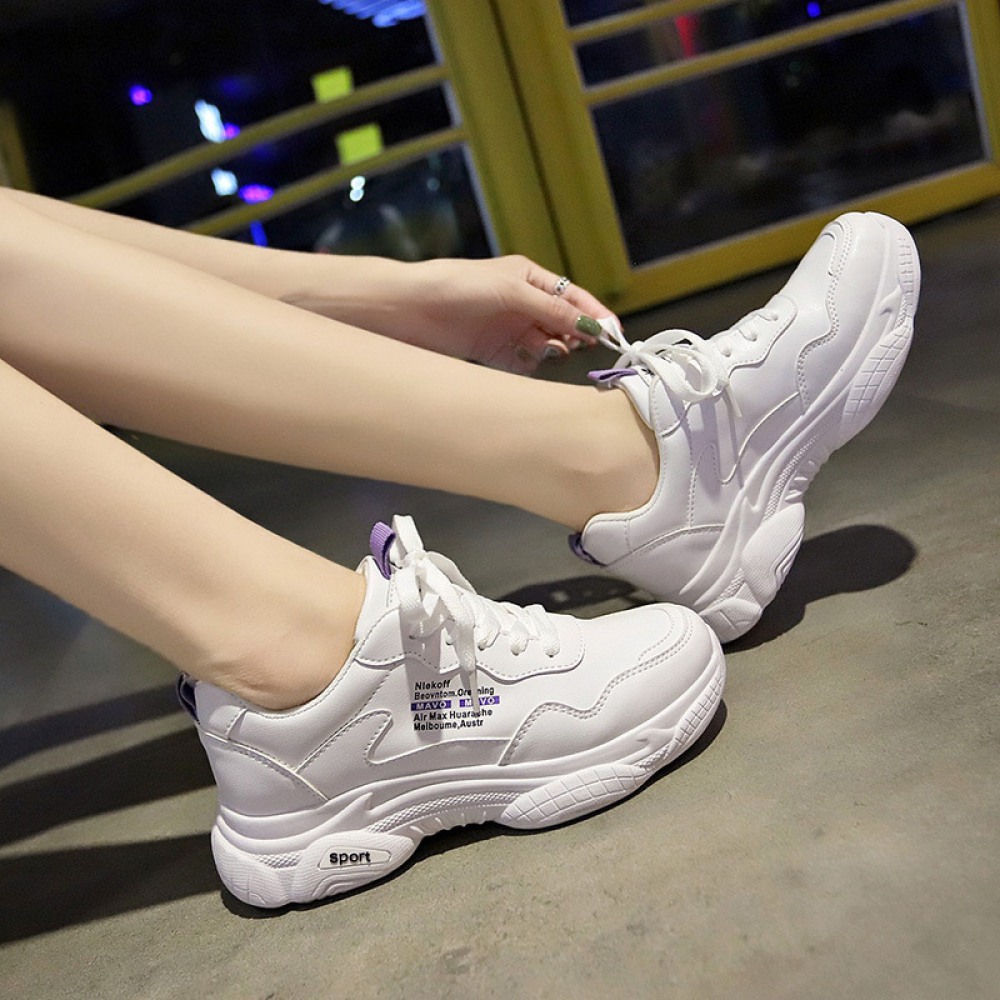 Spring And Summer New White Shoes Women Breathable Leather Thick-Soled Casual Shoes Sports Running Shoes Women